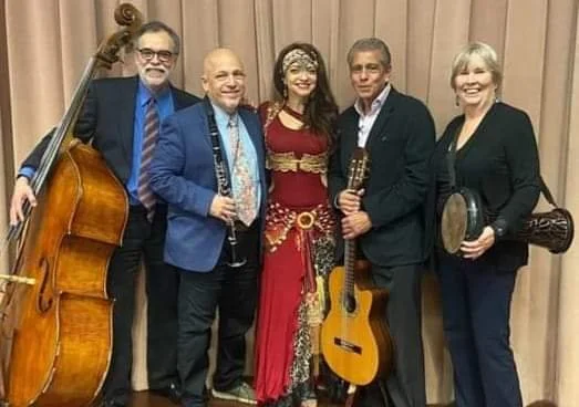 As lead drummer for the well-respected Elias Ladino Ensemble, she is honored to perform the beautiful music of the Sephardic diaspora with Danny Elias (clarinet/vocals) Maurice Sedacca (guitar/oud/vocals) and Marco Brehm (bass.)